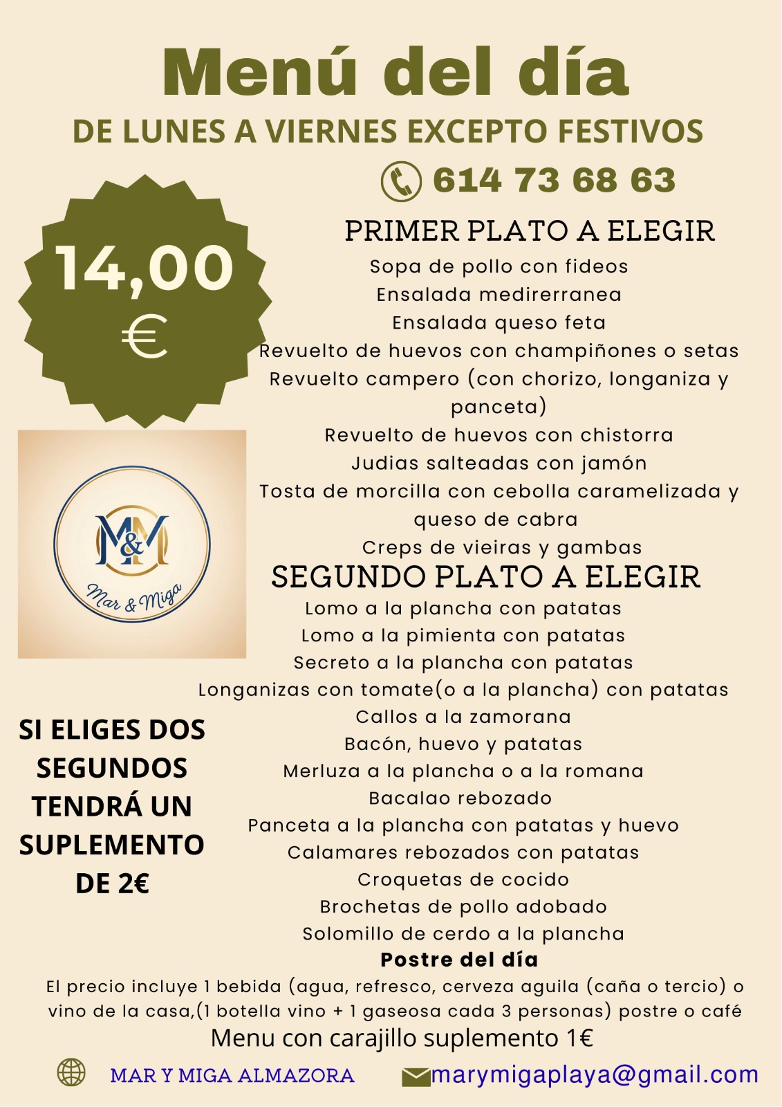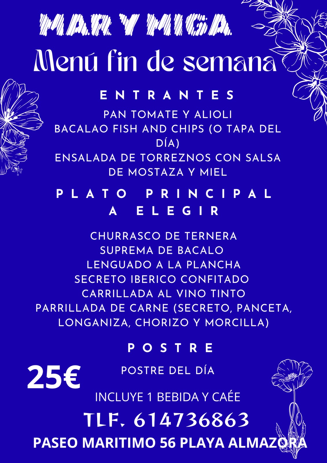 Bienvenido a Mar & Miga , situado en la hermosa playa de Almassora. ¡Esperamos darle la bienvenida! Le espera una cálida bienvenida en nuestro restaurante. Será recibido con genuina hospitalidad y una espléndida variedad de cocina mediterránea. Nuestros chefs expertos preparan platos galardonados. Siéntese y disfrute de nuestra comida expertamente preparada, diseñada para satisfacer todos los gustos. Asegúrese de probar nuestra variedad de postres, tarta de queso y gofres. Podemos satisfacer una multitud de preferencias dietéticas, ofreciendo una amplia gama de opciones sin gluten y sin lactosa. Disfrute de deliciosas bebidas en nuestro cómodo entorno con su comida. En un entorno tranquilo y relajante, disfrute de sabrosos almuerzos y cenas. Tenemos las mejores vistas al mar y música, además de nuestro excelente servicio.